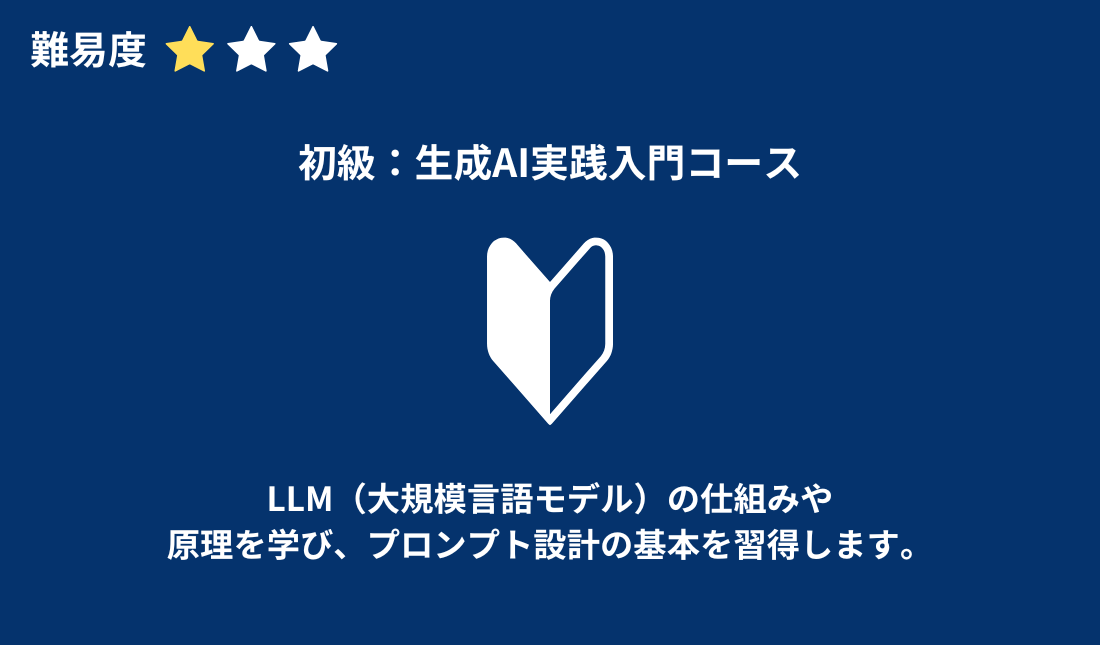 LLM(大規模言語モデル)の仕組みや原理を学び、プロンプト設計の基本を習得します。